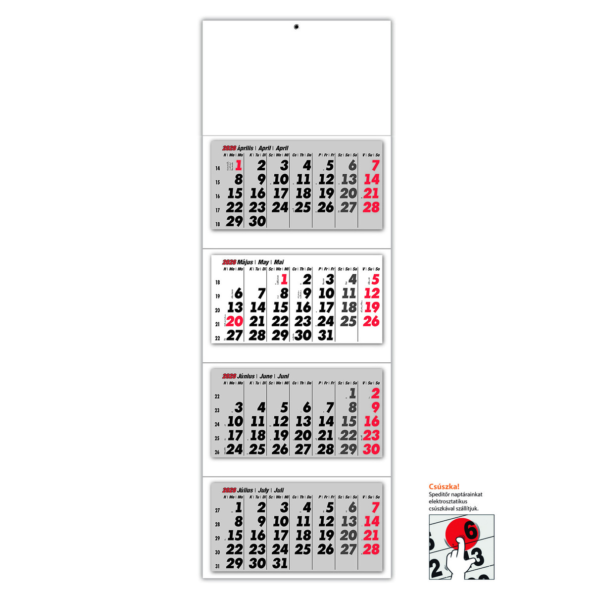 4 tömbös speditőr naptár - Üres, nyomtatható fejrésszel