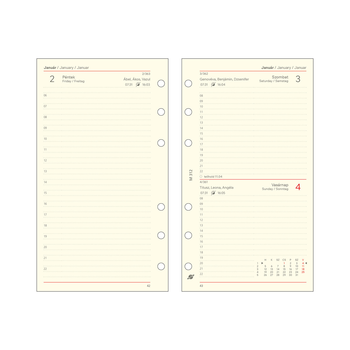 2026 évi napi beosztású kalendárium csomag - M312, Krém (Chamois)