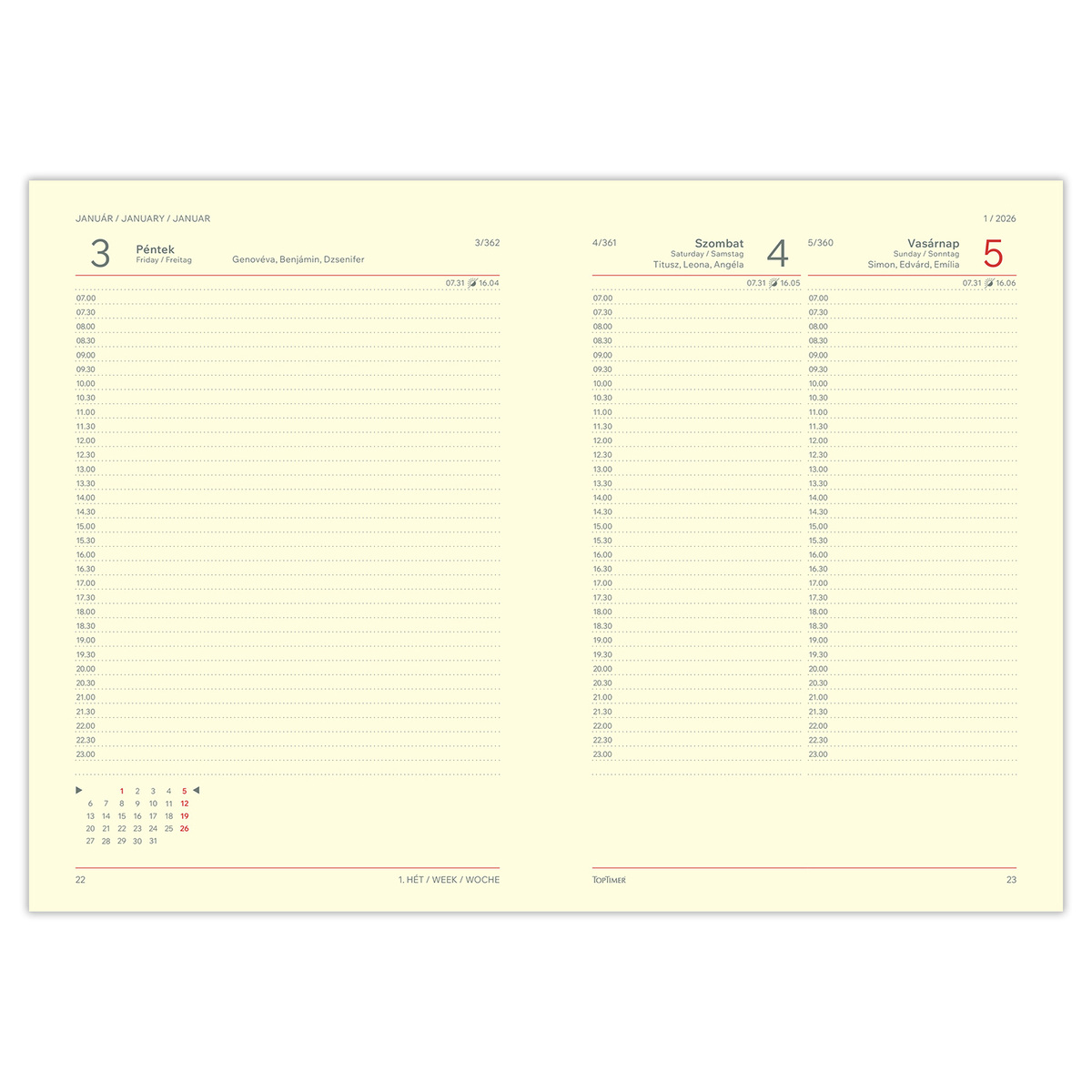 Duplex, A5 napi beosztású határidőnapló, Kék-Mustár