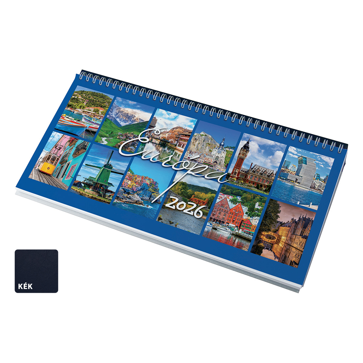 Európa, képes fekvő asztali naptár RS7961, Kék