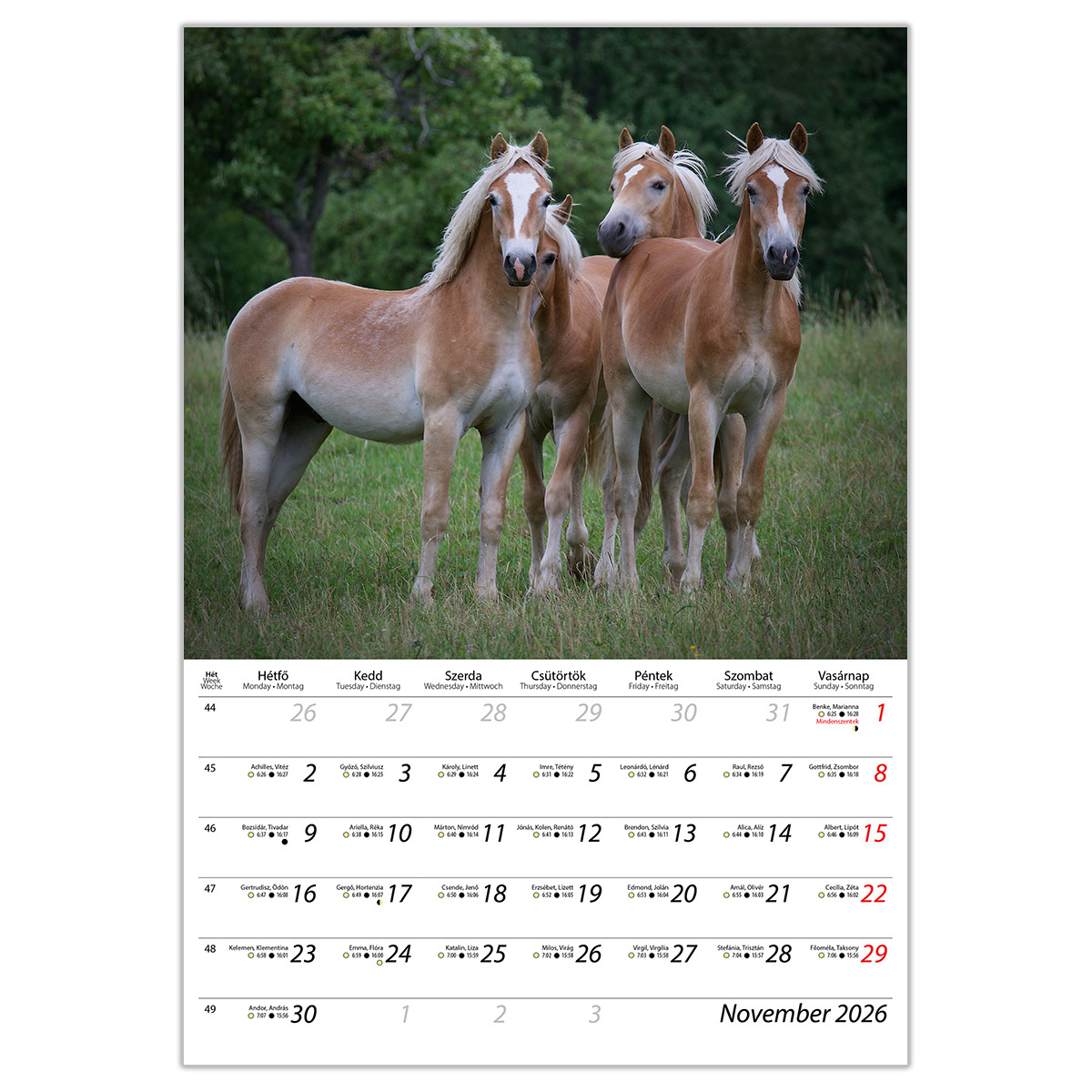 Lovak B4, képes falinaptár 2026