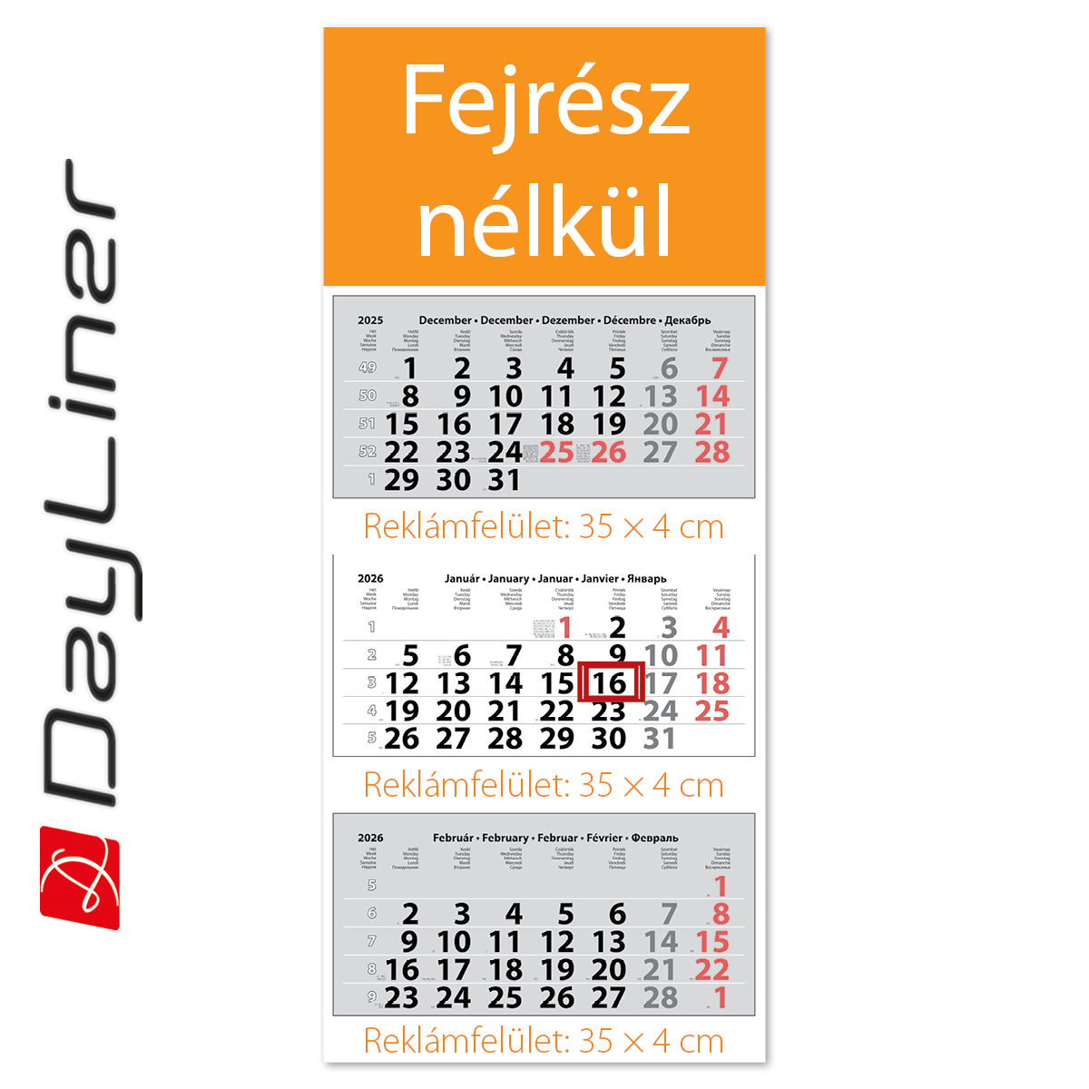 Maxi Classic, 3 tömbös 3 hónapos speditőr naptár - Fejrész nélkül
