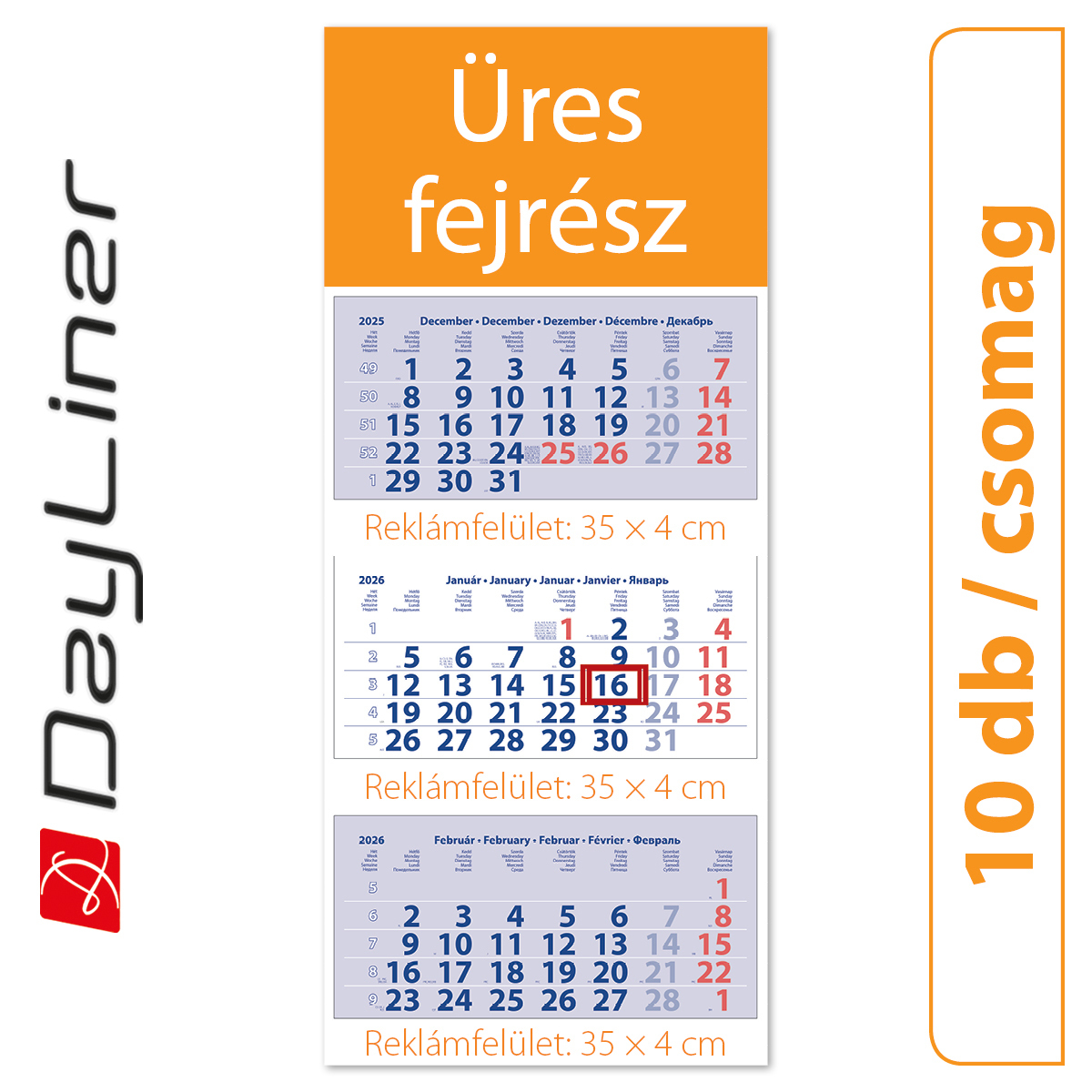 Maxi Club, 3 tömbös 3 hónapos speditőr naptár - Üres, nyomtatható fejrésszel, 10db/csomag