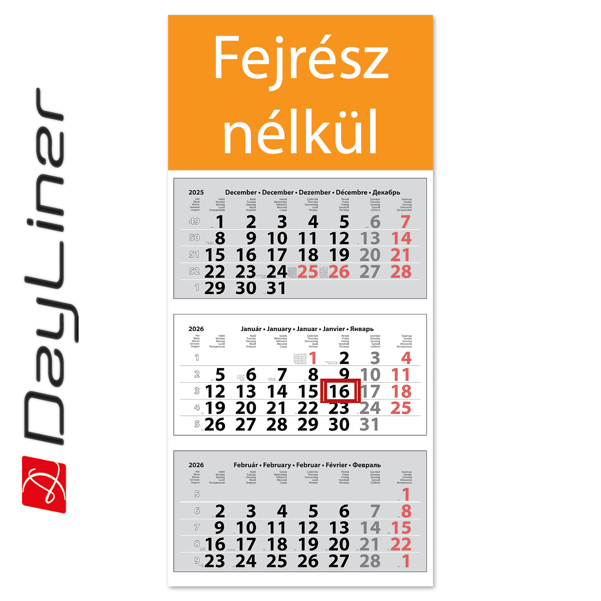 Medium Classic, 3 tömbös 3 hónapos speditőr naptár - Fejrész nélkül