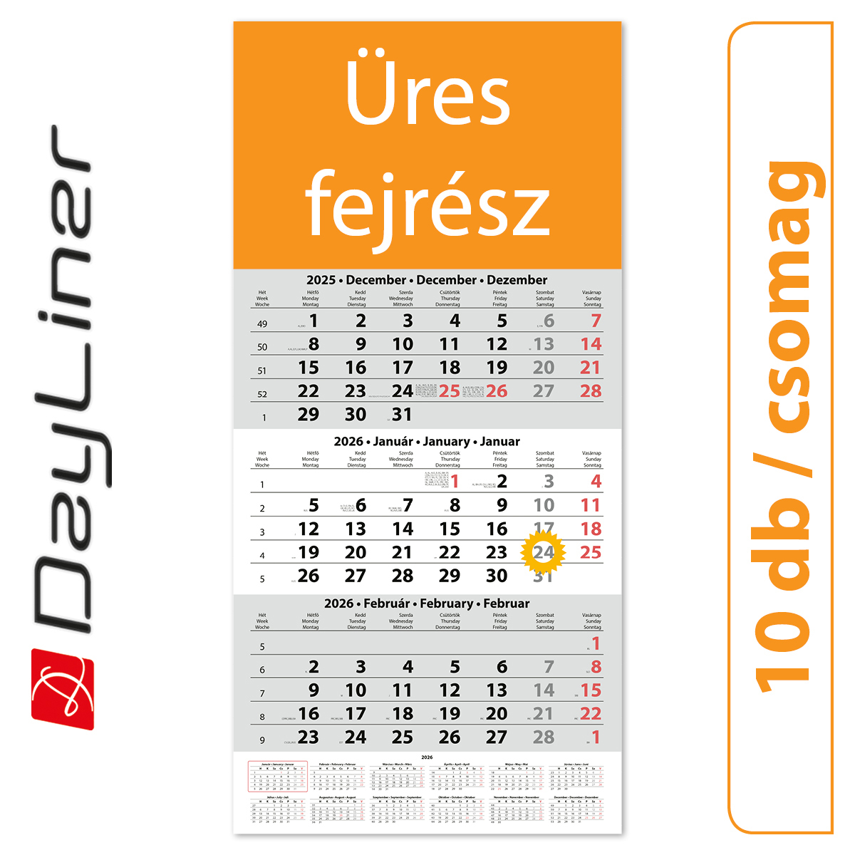 SP1, 12 lapos speditőr naptár - Üres, nyomtatható fejrésszel, 10db/csomag