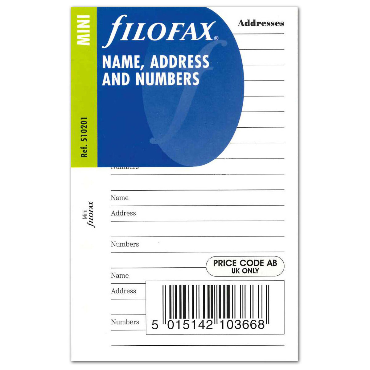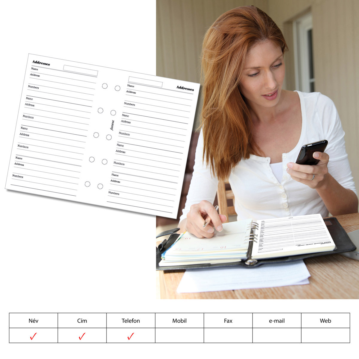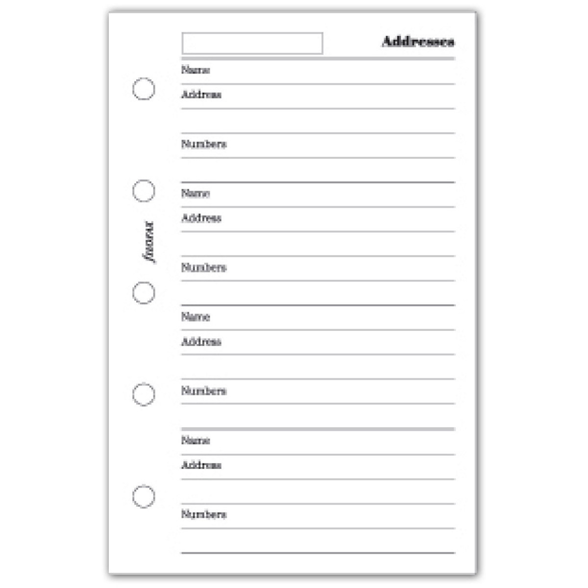 Filofax Kontakt lista (Név / Cím / Telefon) Mini Fehér
