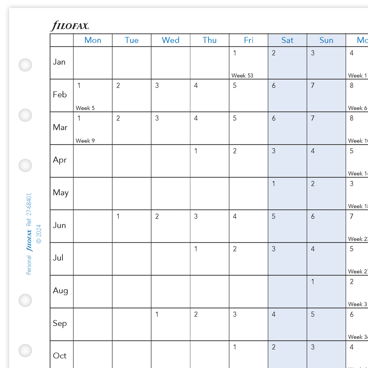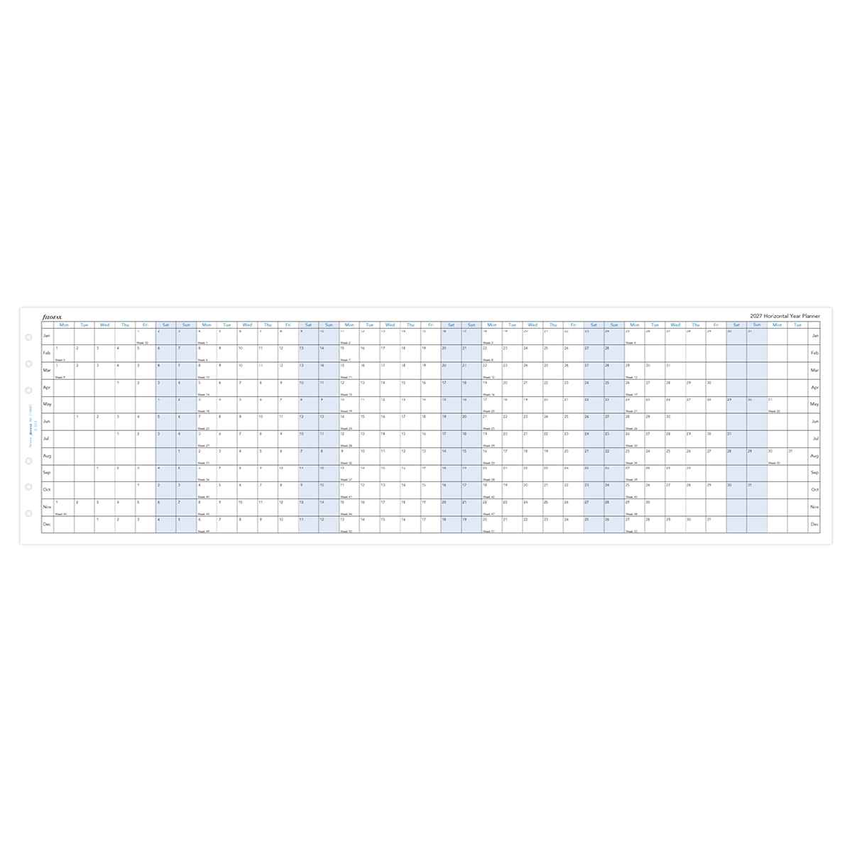 Filofax Naptárbetét Éves Horizontális Personal Fehér 2027