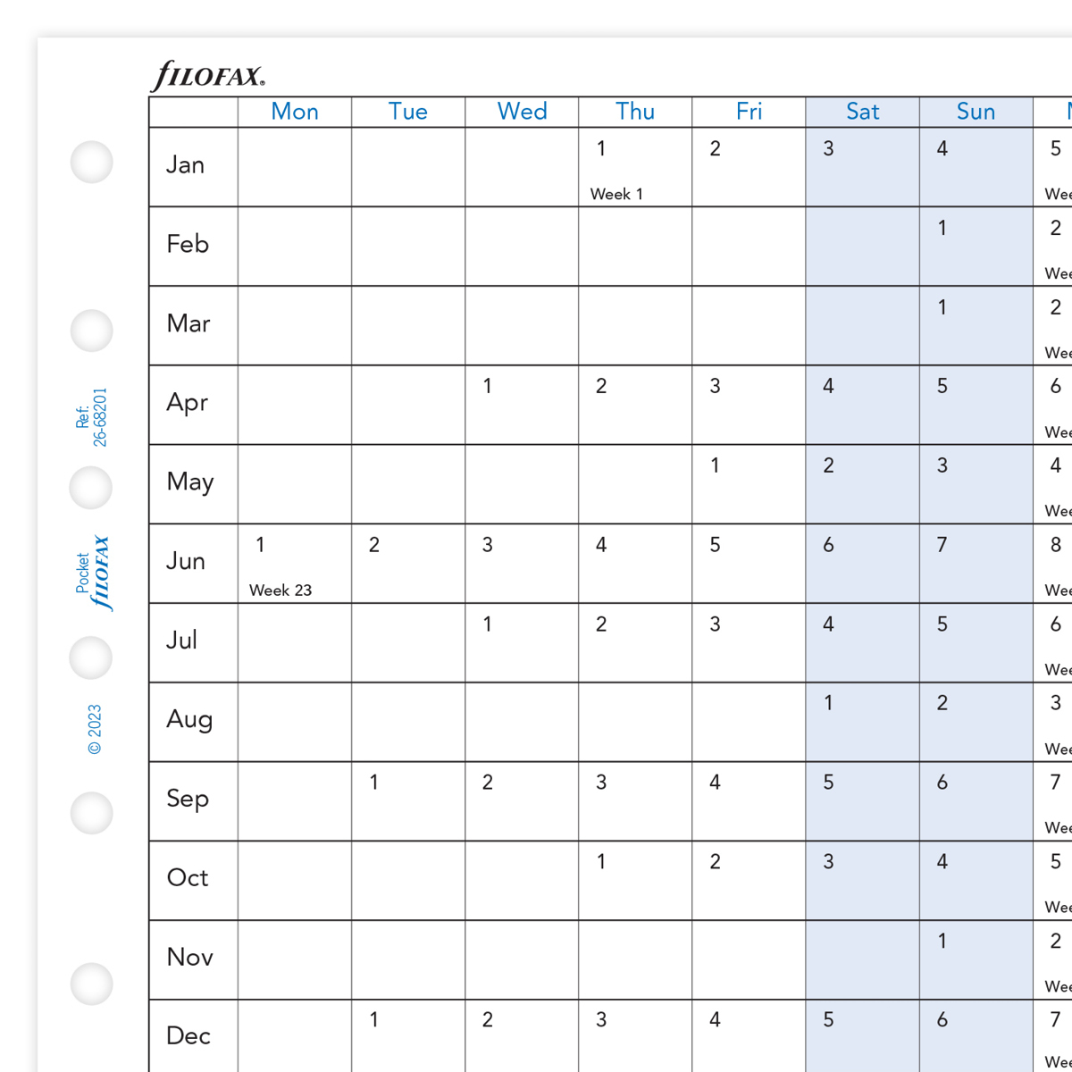 Filofax Naptárbetét Éves Horizontális Pocket Fehér 2027