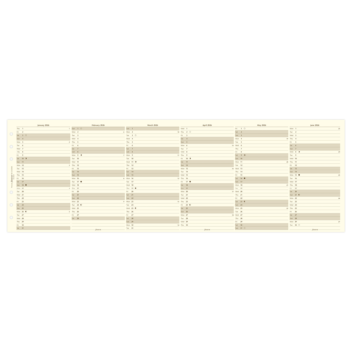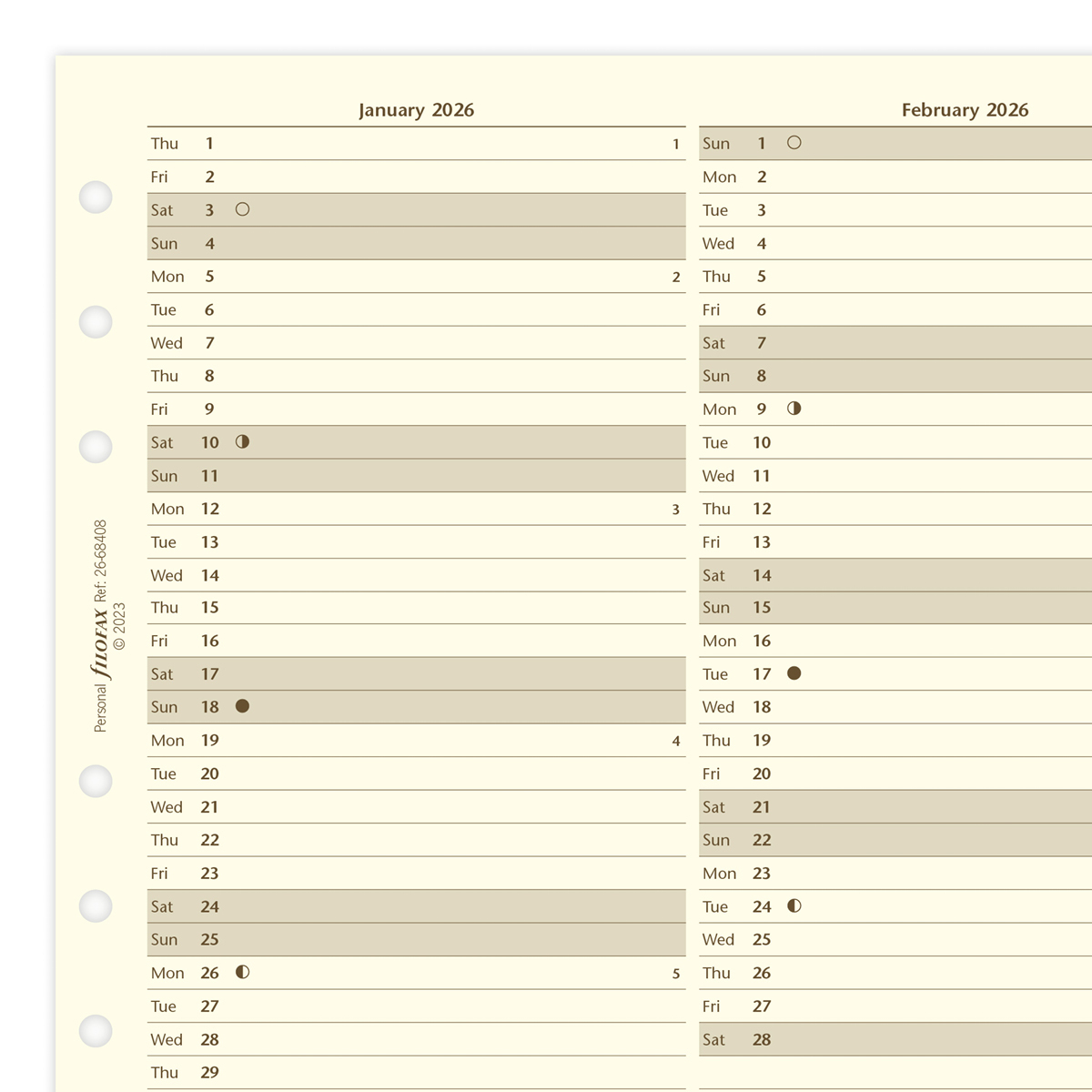 Filofax Naptárbetét Éves Vertikális Personal Krém 2026