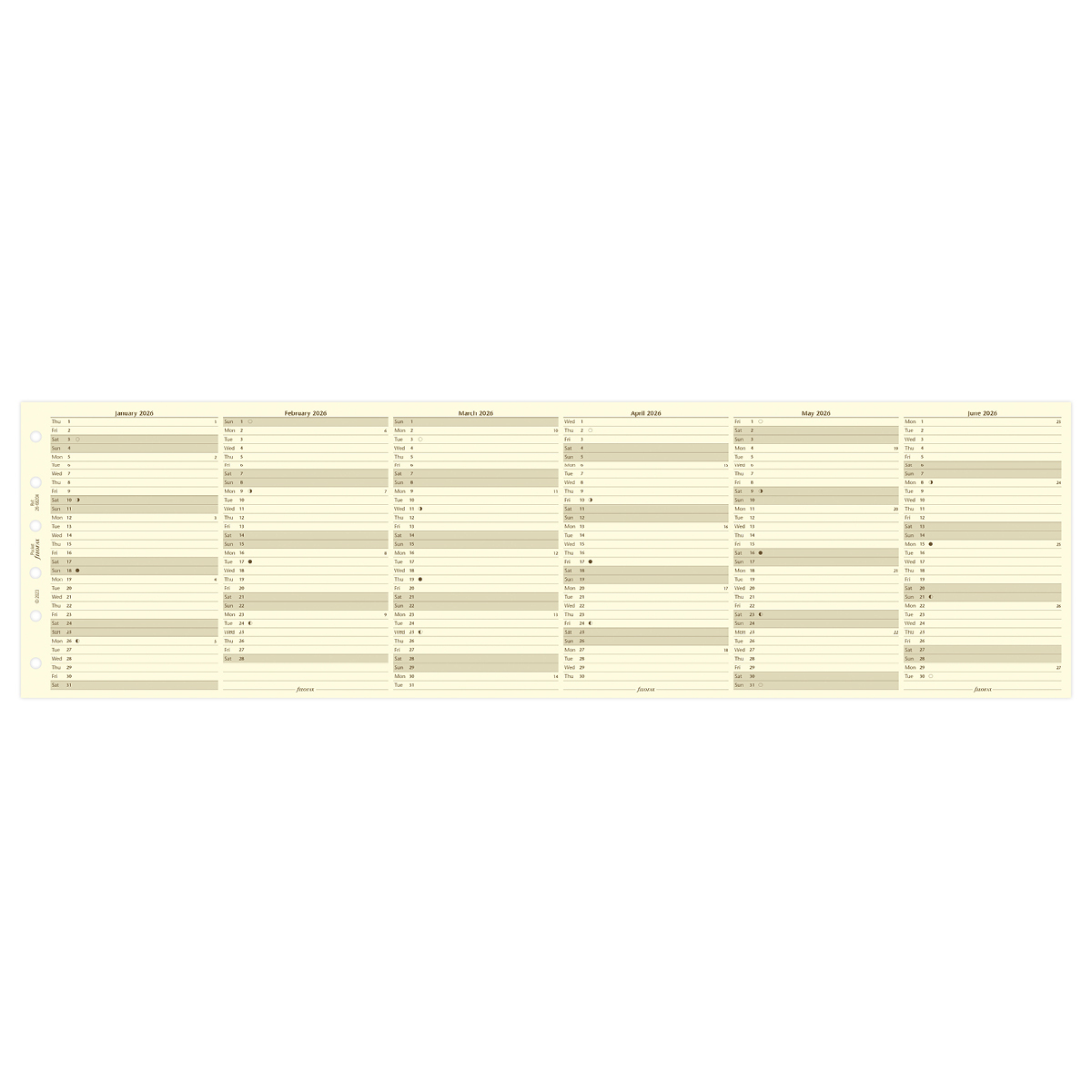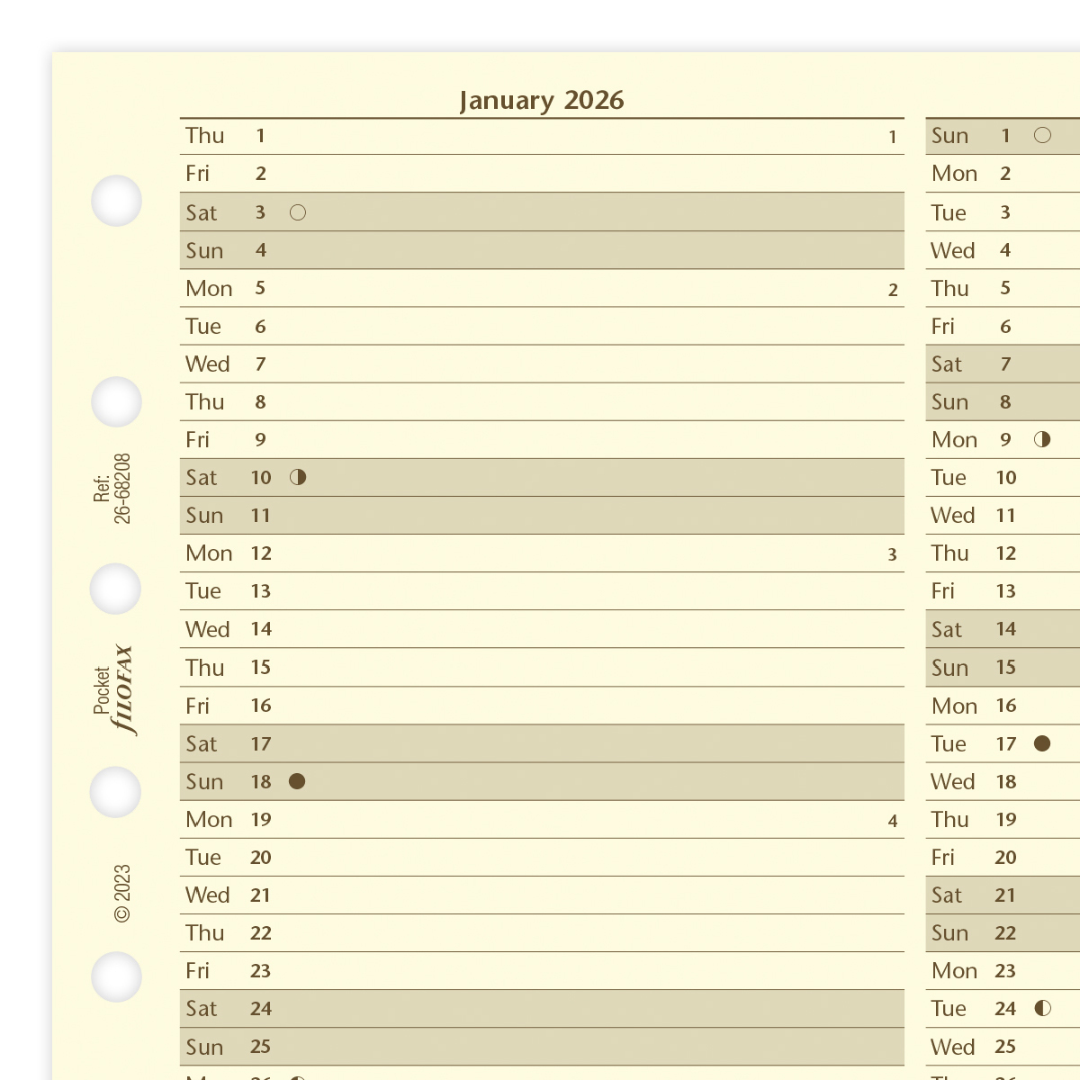 Filofax Naptárbetét Éves Vertikális Pocket Krém 2026