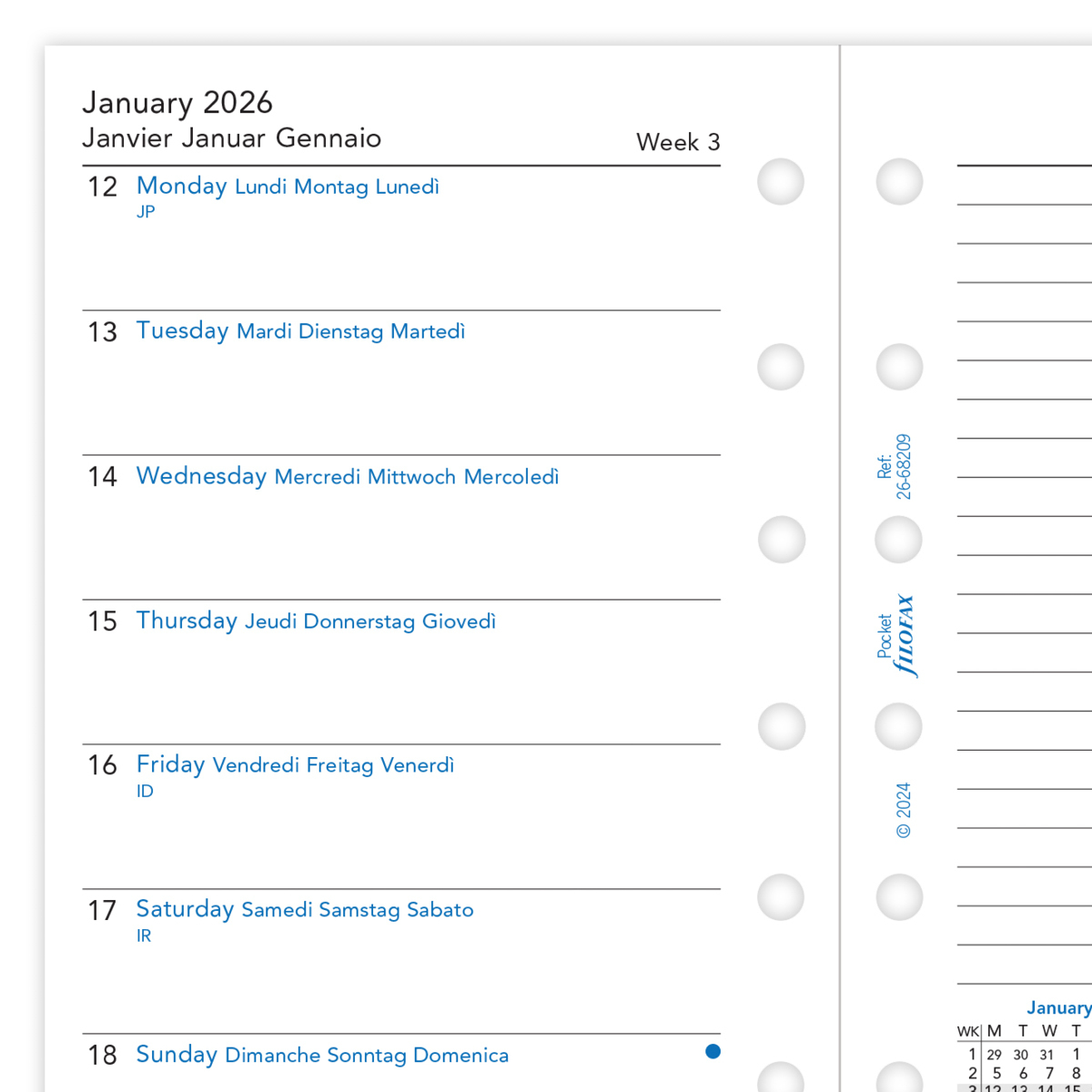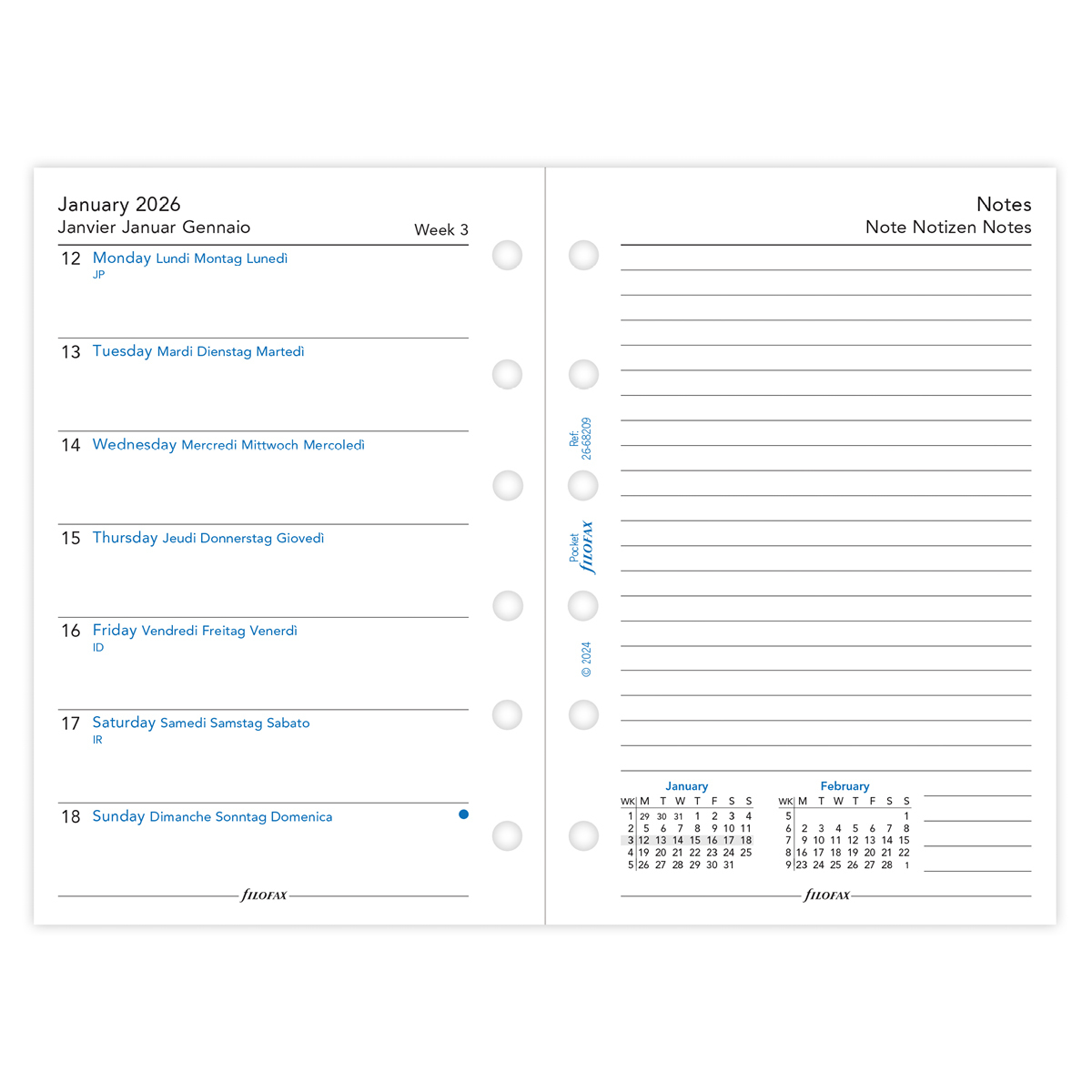Filofax Naptárbetét Heti 1 hét / 1 oldal + 1 oldal jegyzet Pocket Fehér 2026