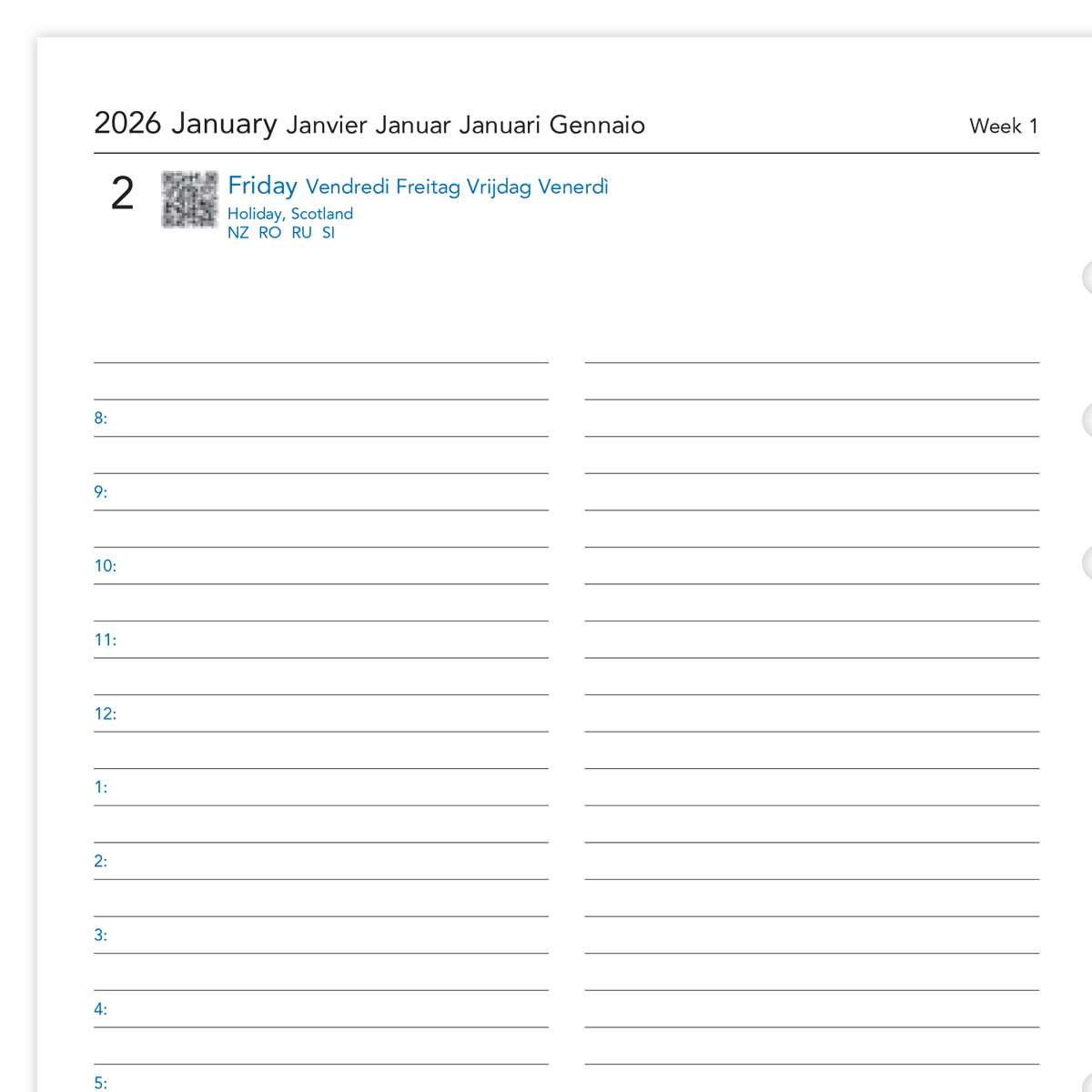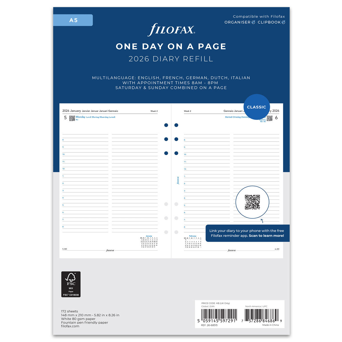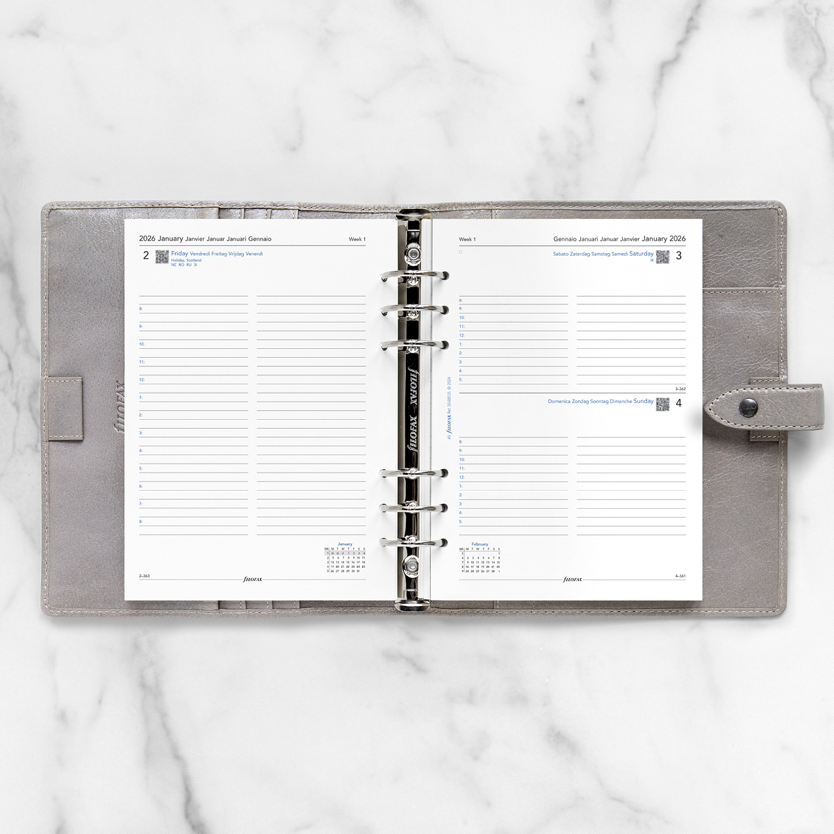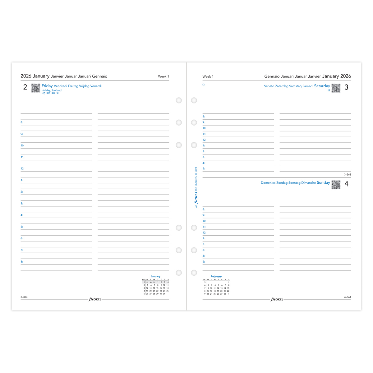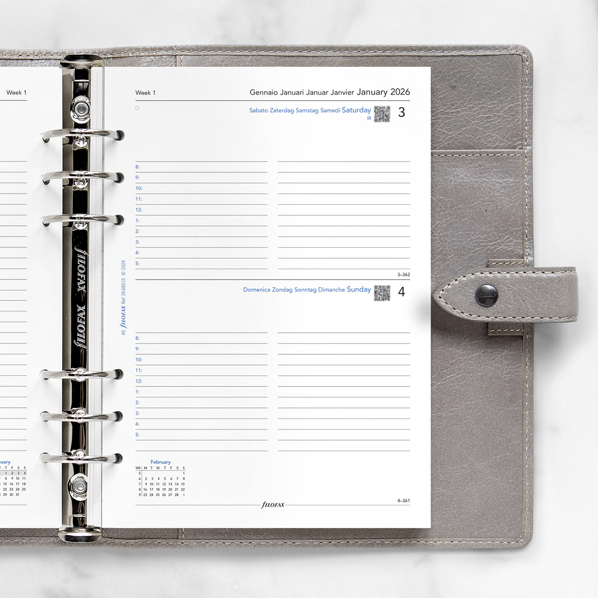 Filofax Naptárbetét Napi 1 nap / 1 oldal 5 nyelvű A5 Fehér 2026