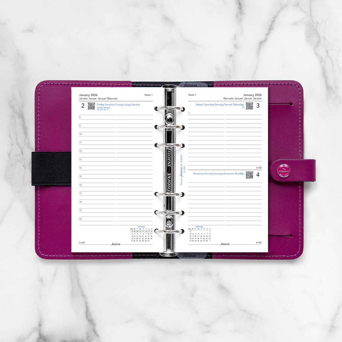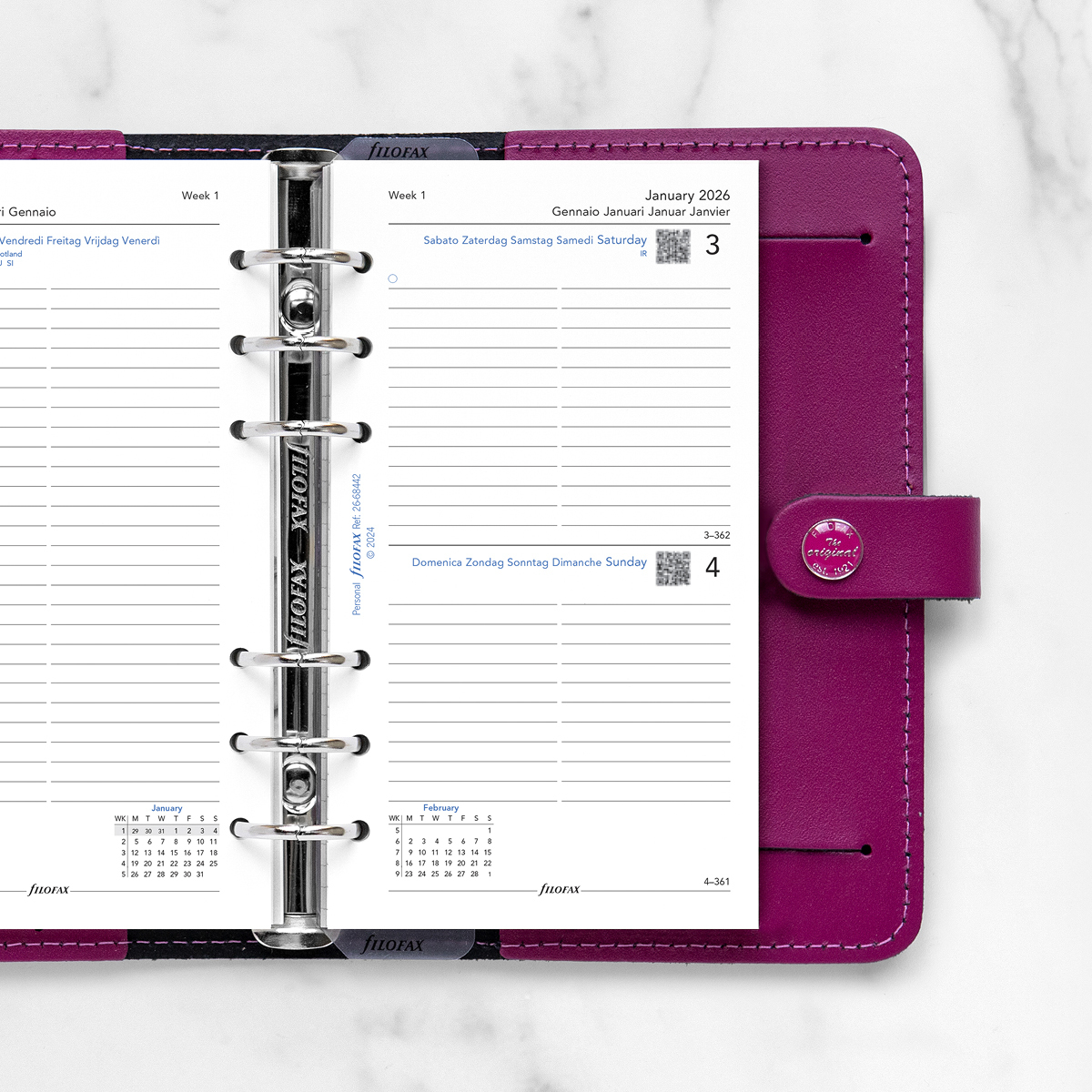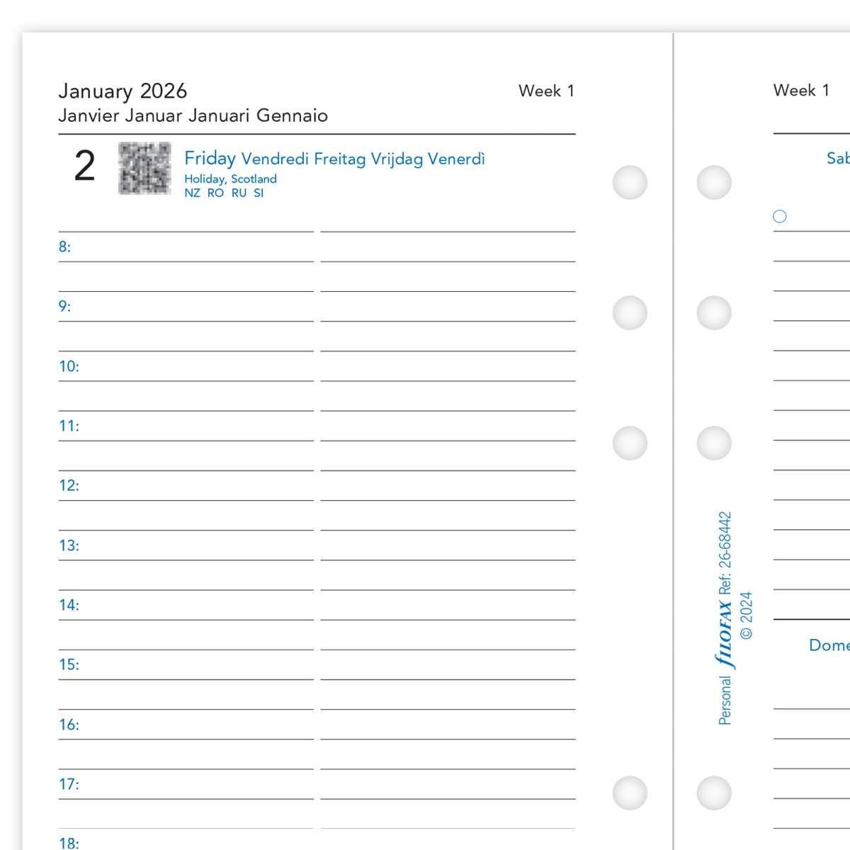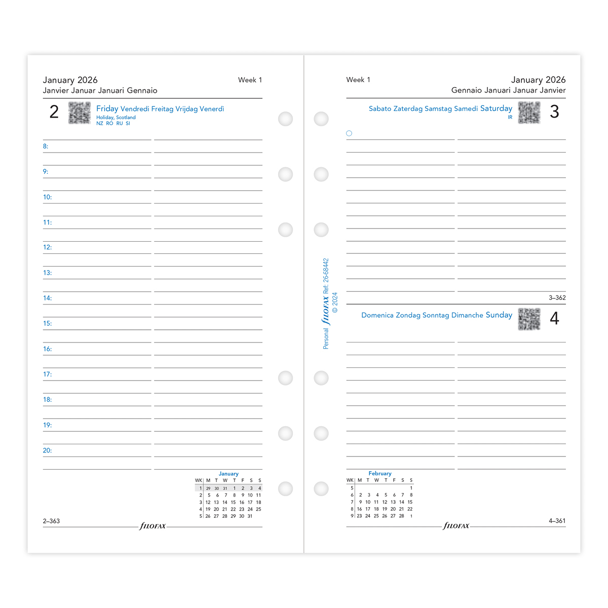Filofax Naptárbetét Napi 1 nap / 1 oldal 5 nyelvű Personal Fehér 2026