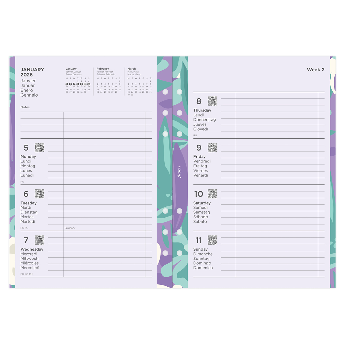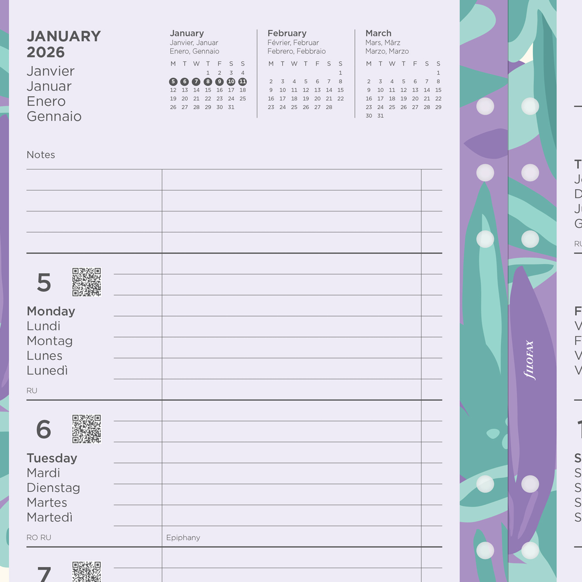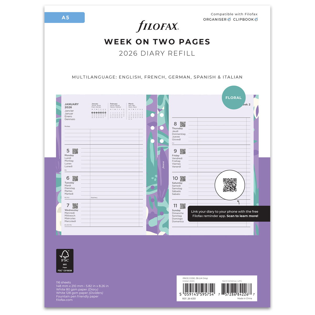 Filofax Naptárbetét + Pótlapok csomag A5 Színes Floral 2026