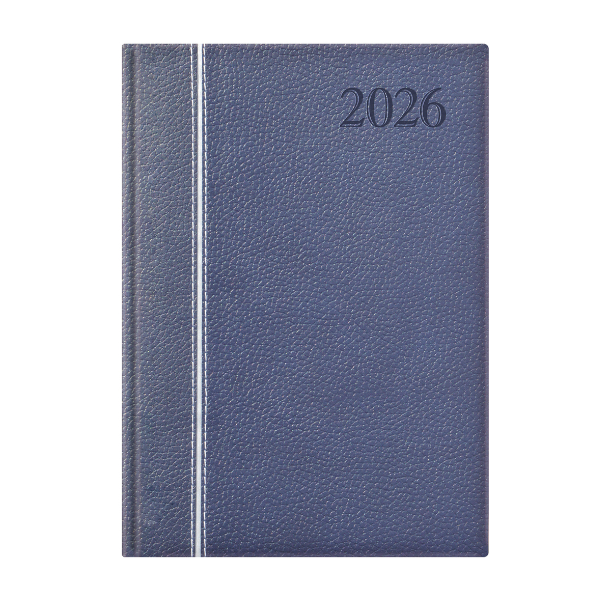 Matt, bőrhatású, hőre színeződő műbőr bevonóval, függőleges díszítő csík bevarrásával készült, fehér tömbös heti beosztású naptár, jelzőszalaggal és sarokperforációval. Elöl-hátul szivacsos fedlap. Színes térképet tartalmaz.