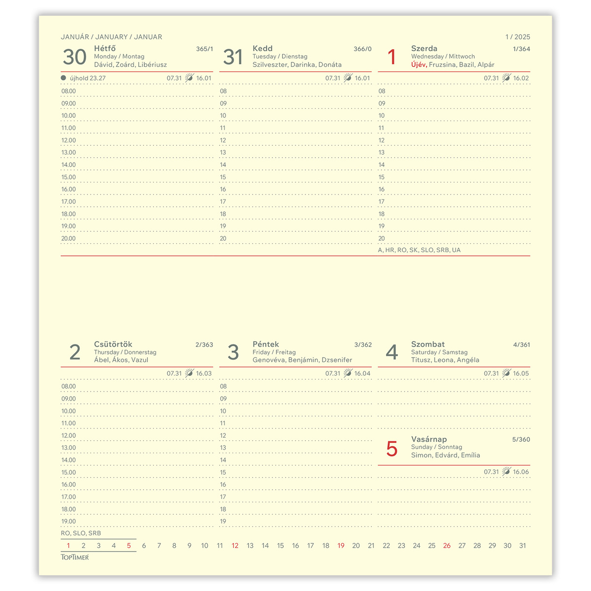 | Naptár beosztás |