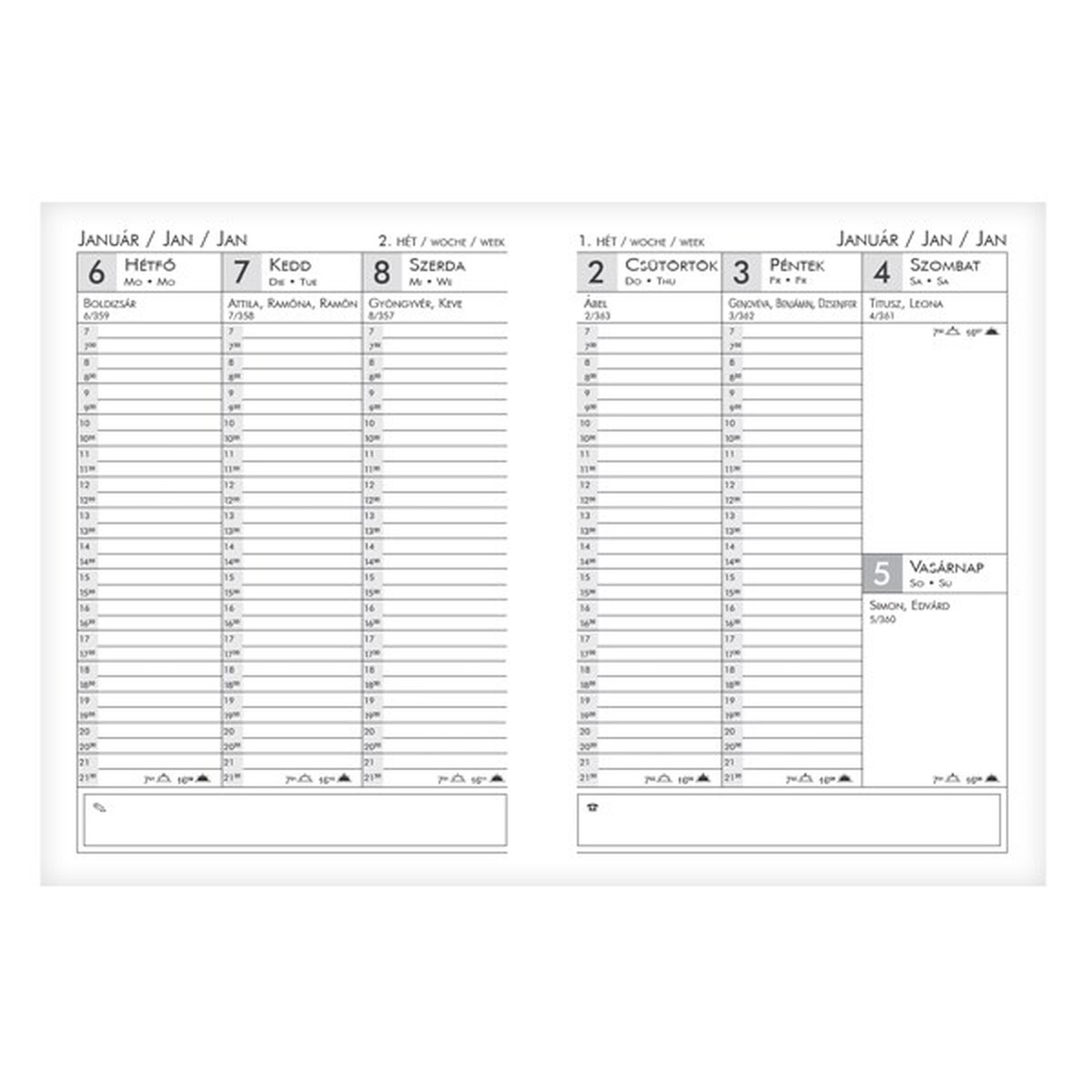 Határidőnapló ALISCA B/6 heti fehér lapos papírtáblás vegyes 2026.