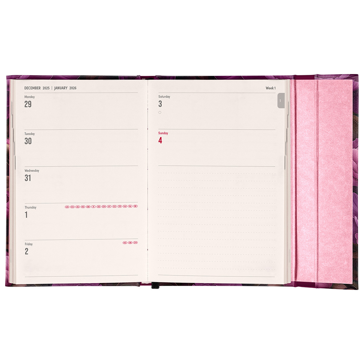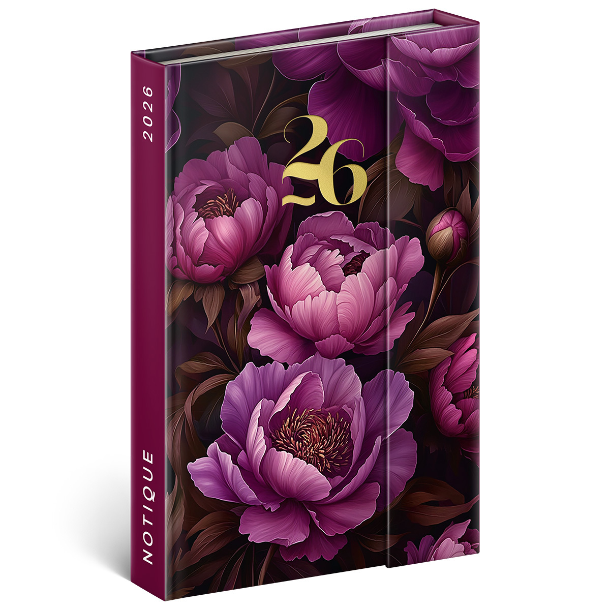 Purple Flowers, mágnessel záródó heti beosztású naptár 2026