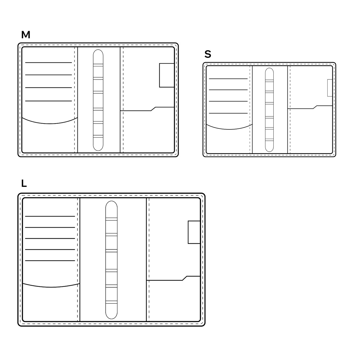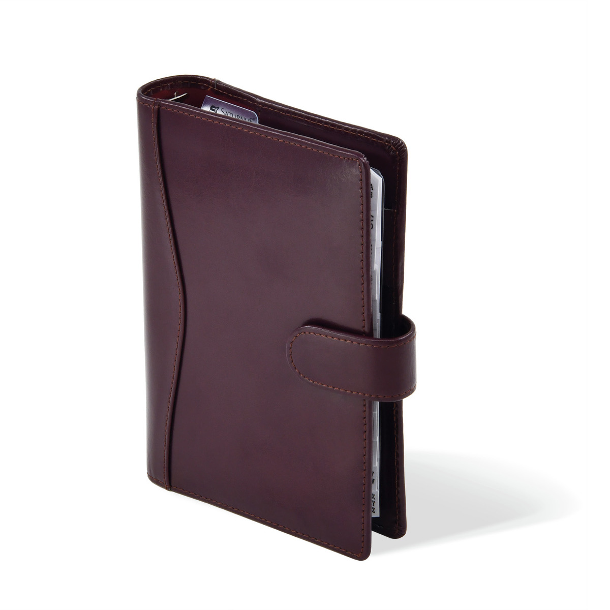 Újrahasznosított, fényes bőrből készült fehér betétlapokkal töltött kalendárium, elegáns kivitelben.