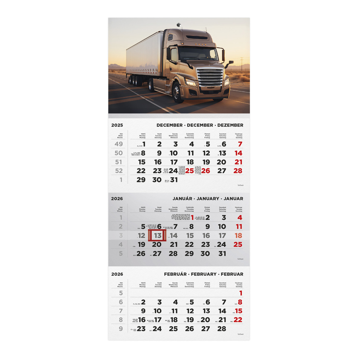 T072, 1 tömbből álló 3 havi speditőr naptár - Kamion fejrésszel