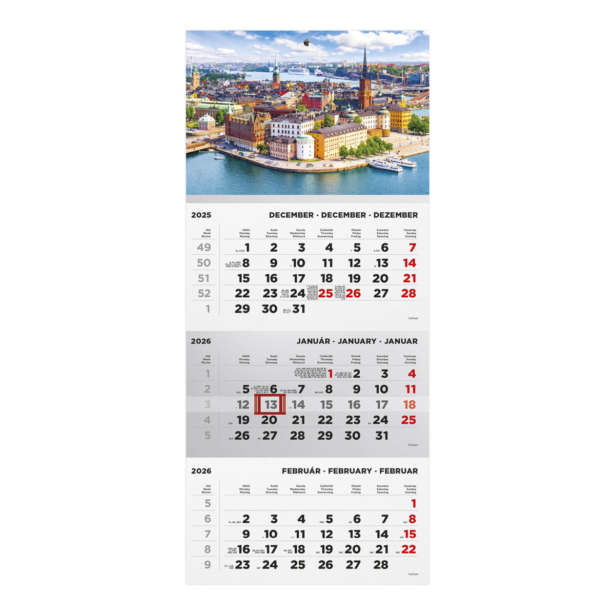 T072, 1 tömbből álló 3 havi speditőr naptár - Város fejrésszel