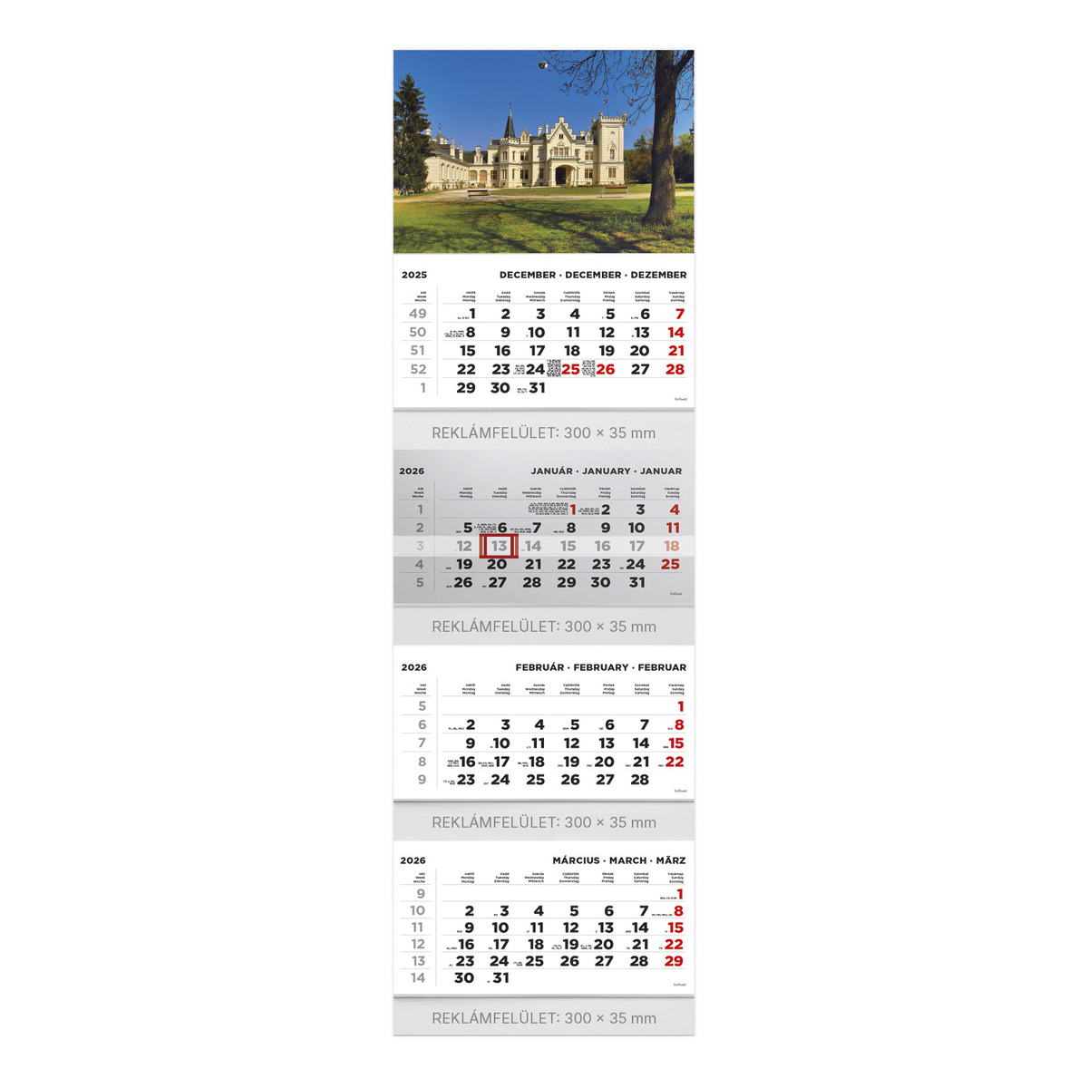 T073, 4 tömbből álló 4 havi speditőr naptár - Kastély fejrésszel