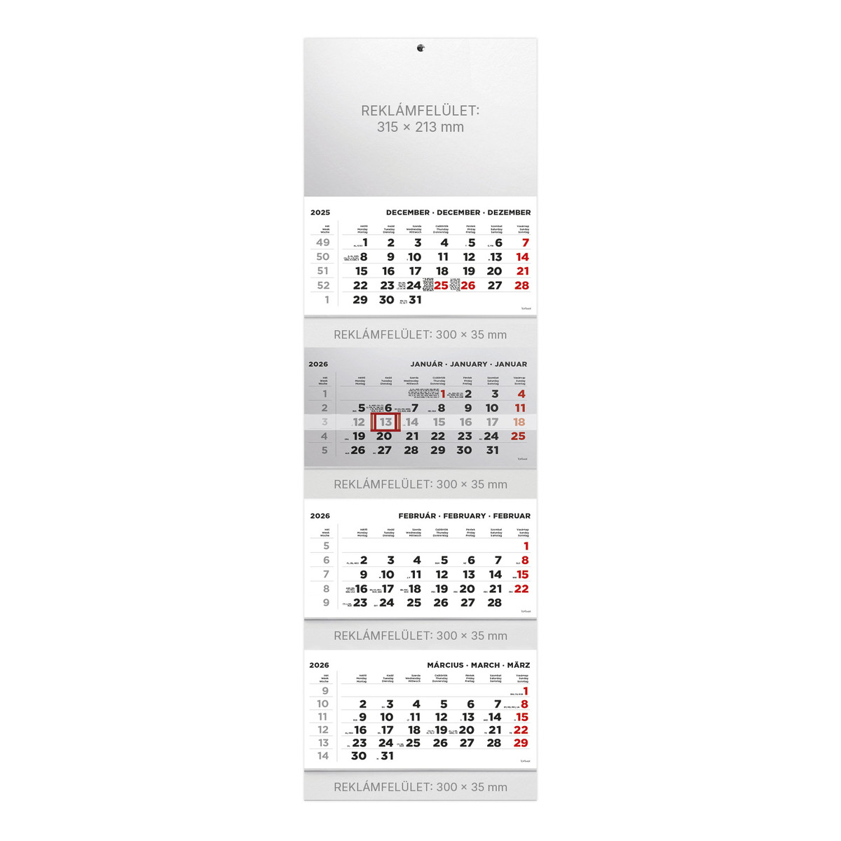 T073, 4 tömbből álló 4 havi speditőr naptár - Üres, nyomtatható fejrésszel