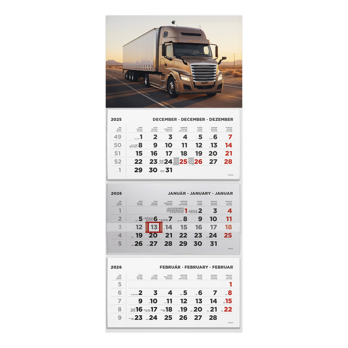 T074, 3 tömbből álló 3 havi speditőr naptár - Kamion fejrésszel