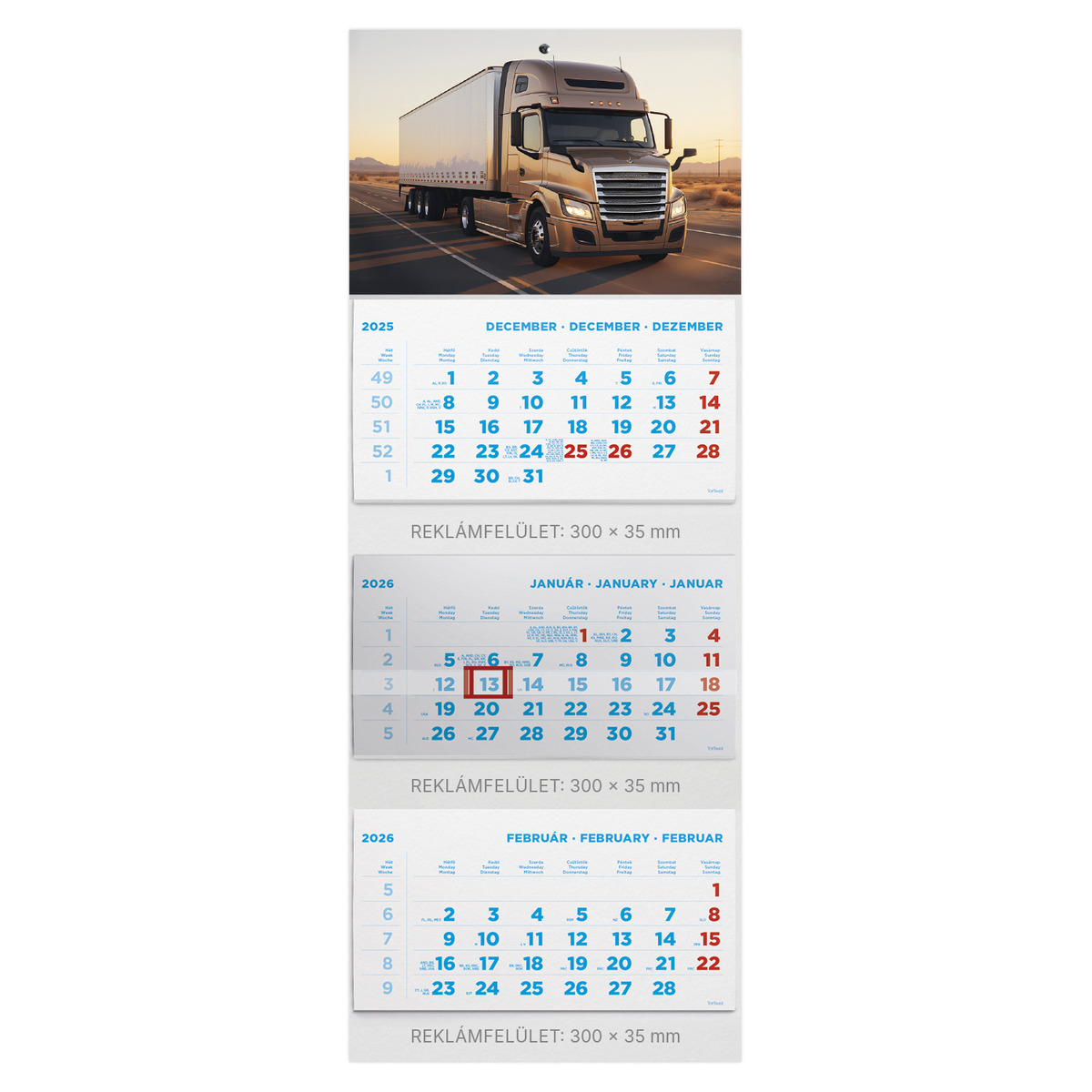 T075, 3 tömbből álló 3 havi speditőr naptár - Kamion fejrésszel
