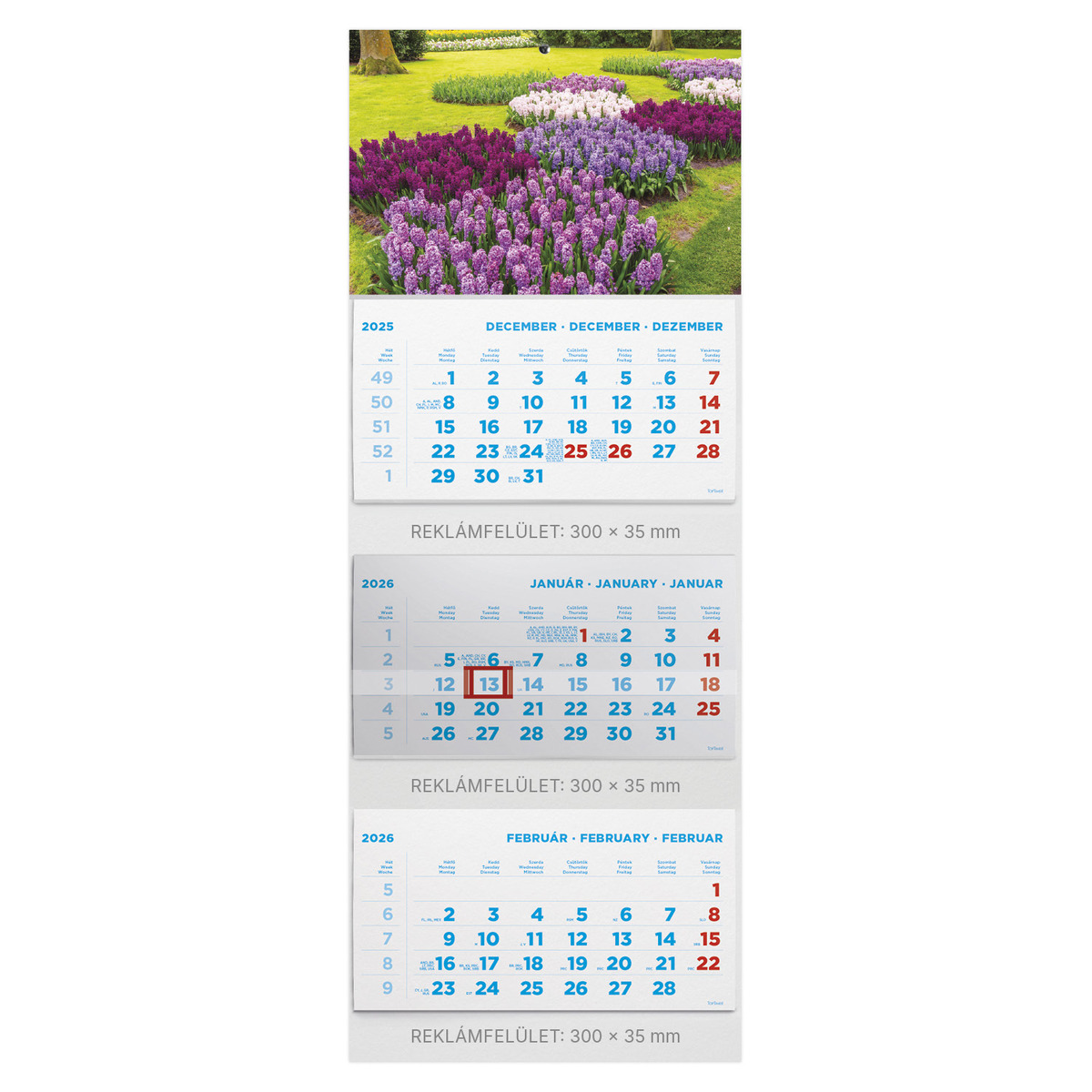 T075, 3 tömbből álló 3 havi speditőr naptár - Kert fejrésszel