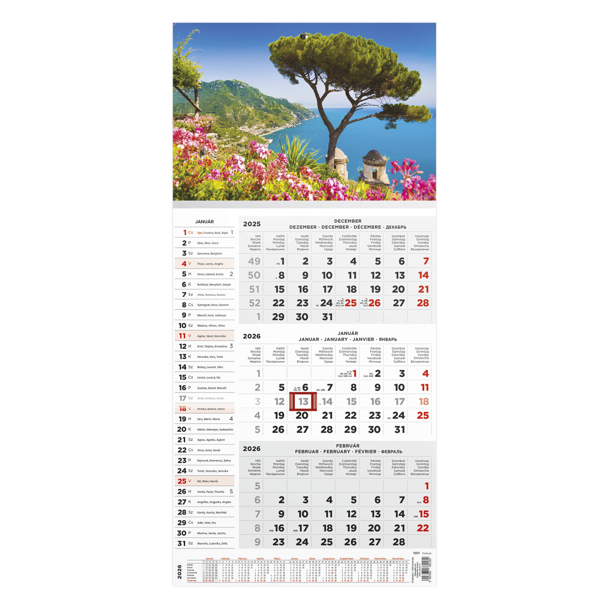 T077, 1 tömbből álló 3 havi speditőr naptár - Táj fejrésszel