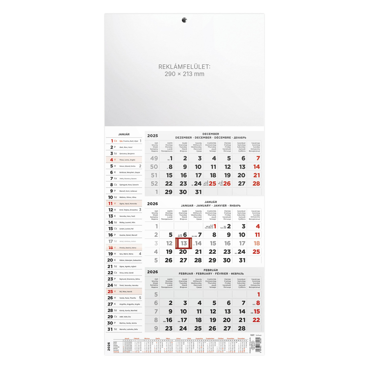 T077, 1 tömbből álló 3 havi speditőr naptár - Üres, nyomtatható fejrésszel