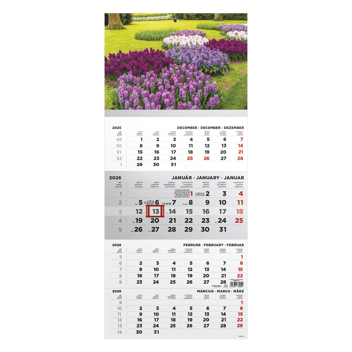 T079, 1 tömbből álló 4 havi speditőr naptár - Kert fejrésszel