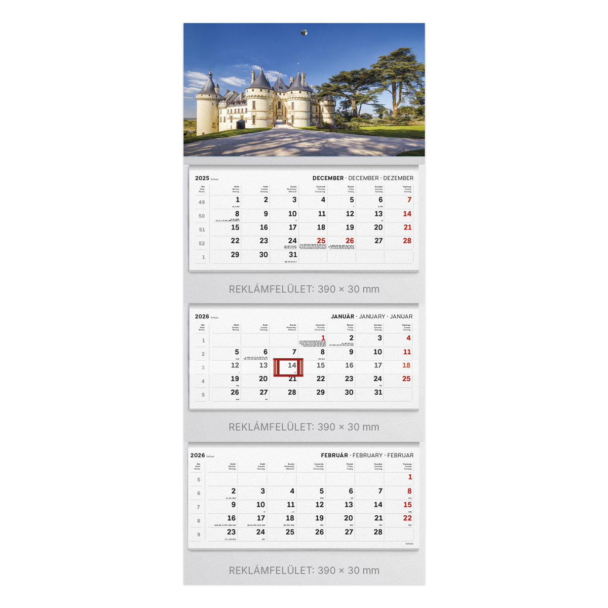 T083, 3 tömbből álló 3 havi speditőr naptár - Kastély fejrésszel