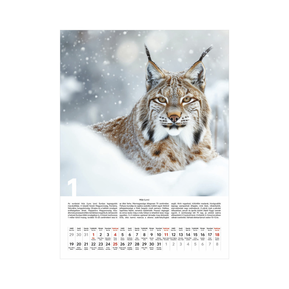 Vadászat, képes falinaptár 2026