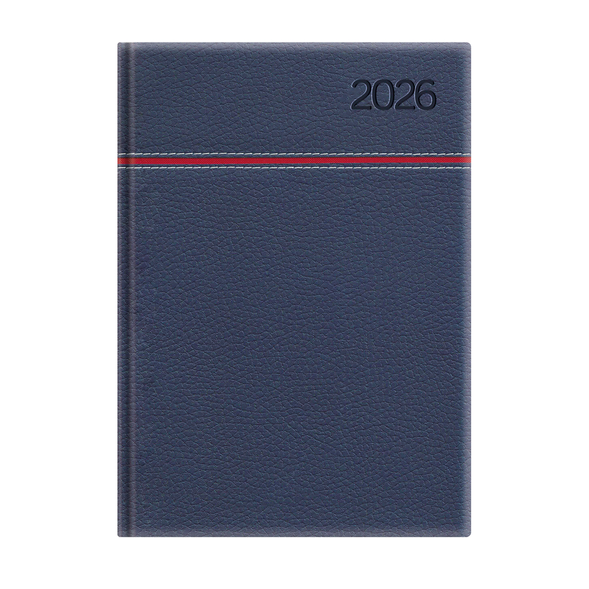 Matt, bőrhatású, hőre színeződő műbőr bevonóval, vízszintes díszítő csík bevarrásával készült, fehér tömbös heti beosztású naptár, jelzőszalaggal és sarokperforációval. Elöl-hátul szivacsos fedlap. Színes térképet tartalmaz.